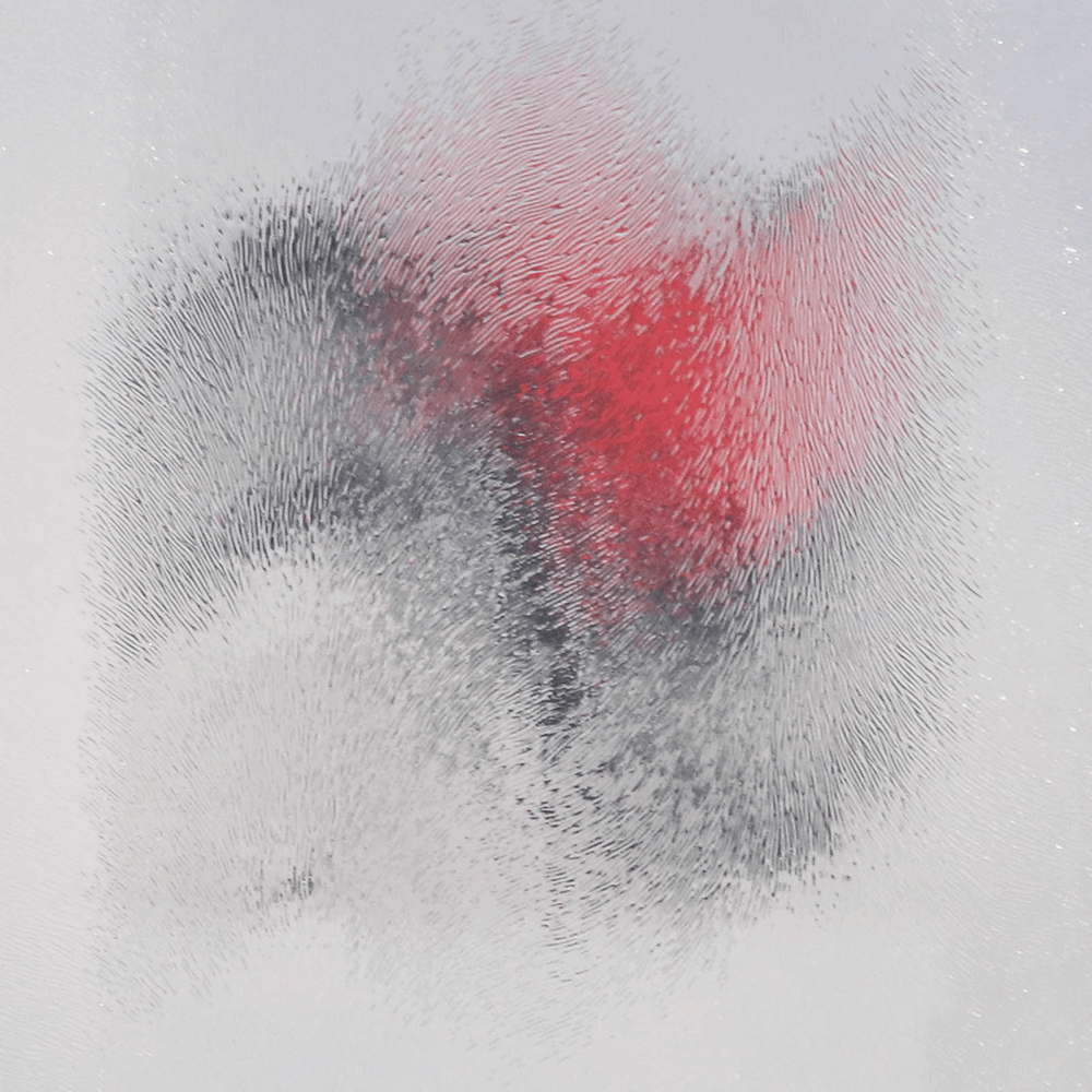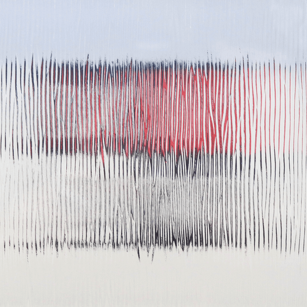 A vertical pattern and textured surface that create the illusion of rain trickling down a window.