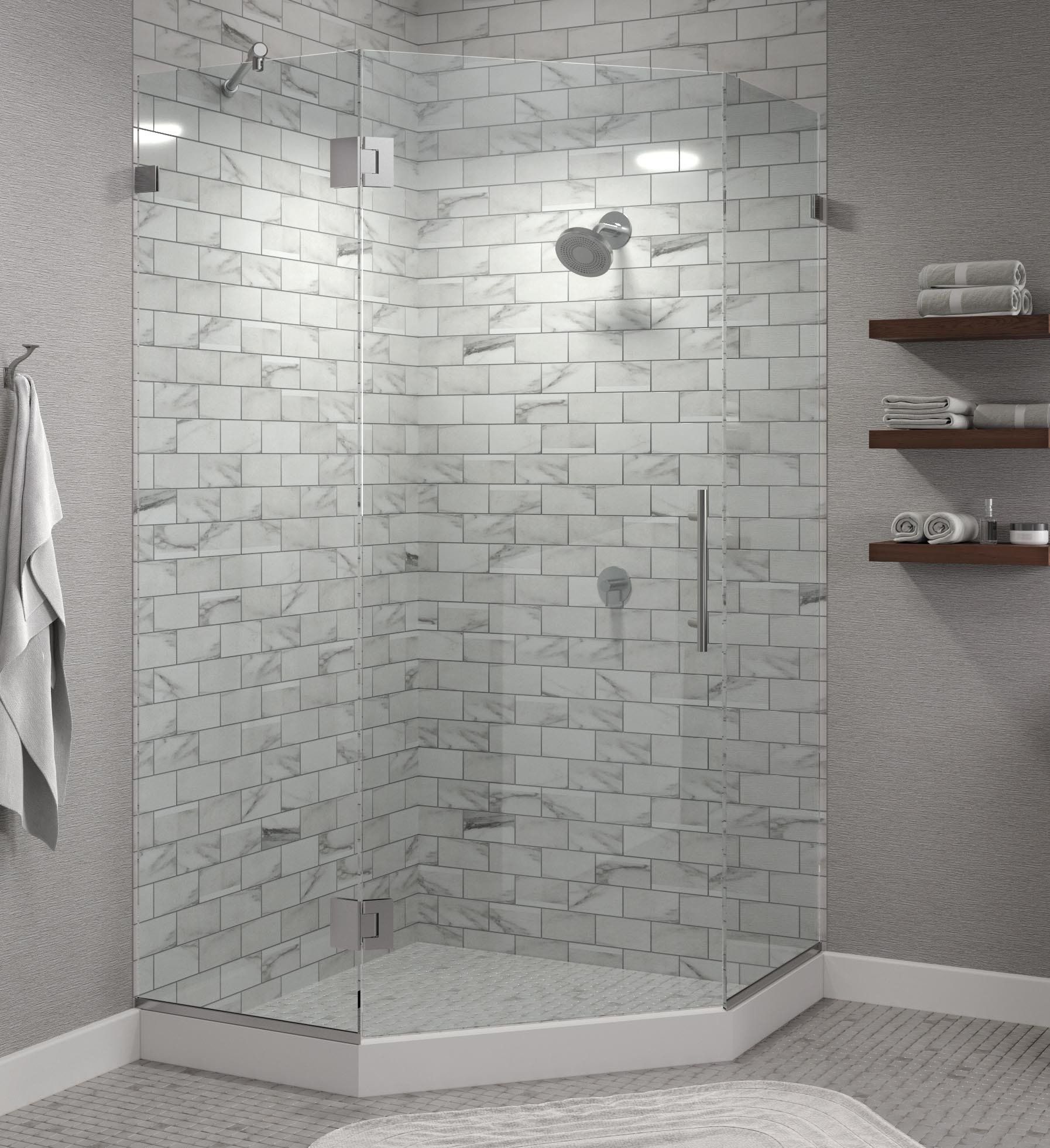 Infinity Panel/Door/Return Panel Enclosure with Brushed Nickel metal finish and Clear glass.